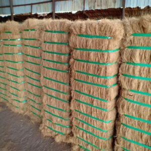 Husk is mechanically decorticated, extracting long fiber and leaving coir pith.