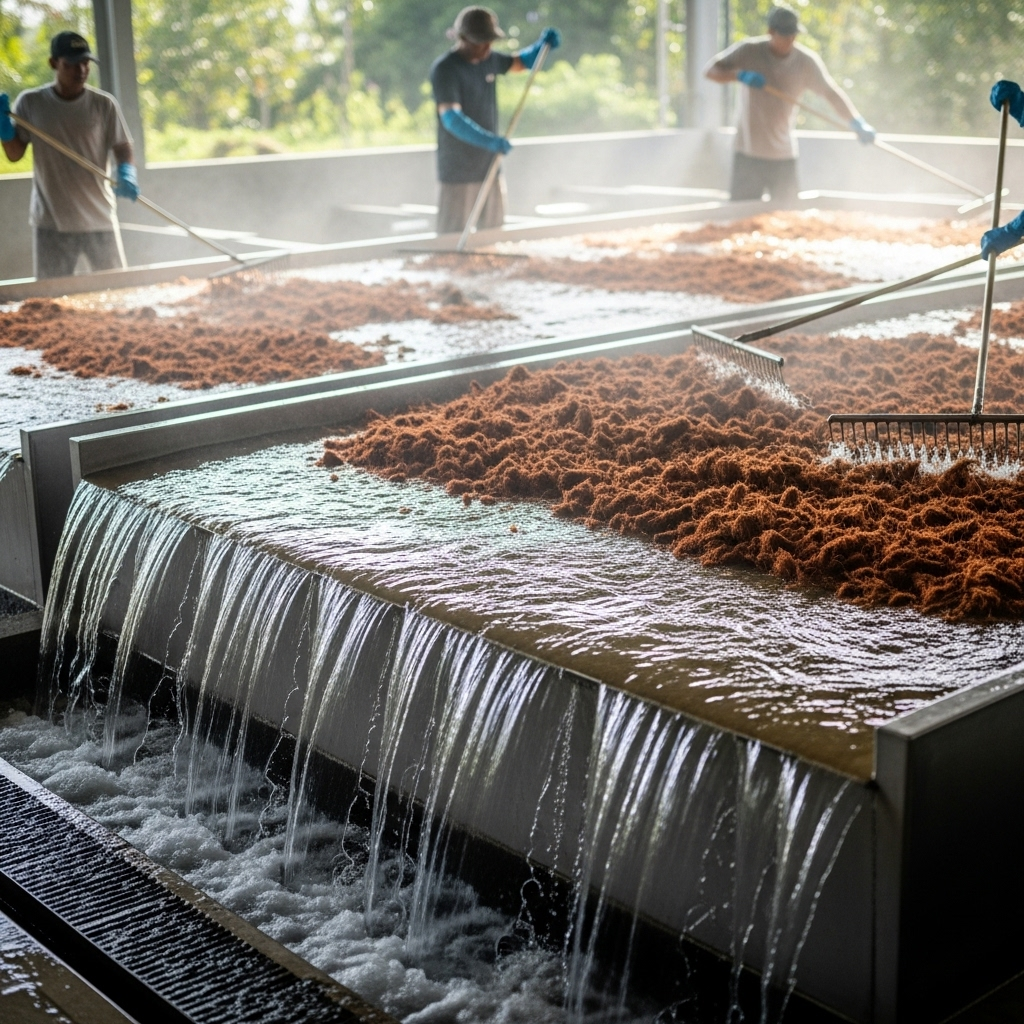 Multi stage sieving eliminates dust, sand, and remaining fibers, ensuring uniform texture.